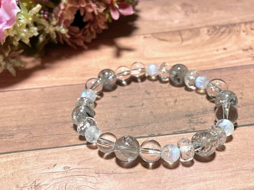 虹色の輝き* 心の傷やトラウマを癒す エレスチャルクォーツ・レインボームーンストーン・水晶のブレスレット