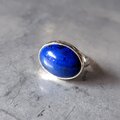 鮮やかなブルーが印象的なツルンとしたラピスラズリをシルバーリングに仕立てました。