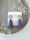 モードなトップに、揺れるパープルネイビーのタッセルの組み合わせ。