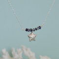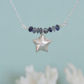 イトマキヒトデの青い体をイメージした、アイオライトを合わせてポイントに。