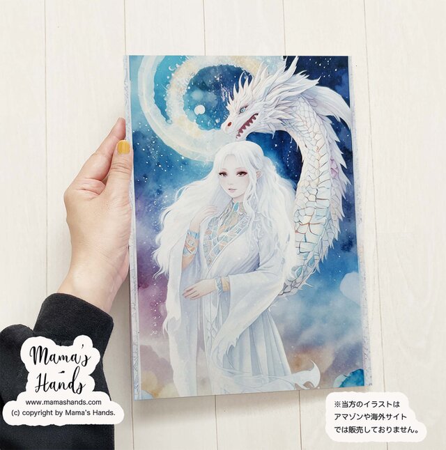⭐️《タロットカード風 魔法の煌めき》☘️A4 ポスター 白龍と龍女 龍神 龍 開運 水神 海神 イラスト アートです♪::::1点売れました::::