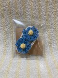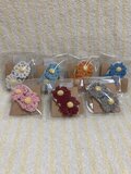 市販のピンを編みくるんでおり、しっかりと留まります。