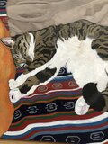 生まれて初めて絵を買いました。見ていて素敵だなと思う絵と、買っていつも眺めていたいと思う絵は、違うと思います。 動物の飼えないアパートの一室に、素敵な猫たちがやってきました。 写実的すぎず、可愛い瞬間がより際立つような、思わずニコッと笑顔になれる絵です。自分の飼い猫を自慢するかのように、素敵な絵を色んな人に自慢しました。大切に、可愛がります。 ありがとうございました。