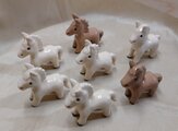 粘土で形を作り、素焼き後、透明釉薬をかけて、1230度で本焼成したあと、上絵で眼と蹄部分に色をつけています。