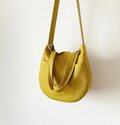 マスタードイエロー ラウンド型バッグ カツラギデニム 外ポケット A4