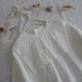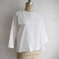 スクエアカラーはフロントのみにし、後ろはシンプルに、大人が取り入れやすいアイテムにしました。