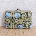 V&Aウィリアムモリス お薬手帳・通帳ケース・がま口大きめポーチ 18cm口金 母の日 ピンパネル 水色 840