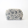 【特価品】綿麻キャンバスのラウンドポーチ( 鳥と植物 )化粧ポーチ 北欧 ボタニカル