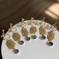 イヤリング金具はヴィンテージに合わせて濃いめのゴールドにしています。