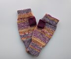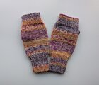 可愛らしい模様が出る段染め糸にメリノウールの単色糸を引き揃えて編んだハンドウォーマーです。