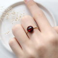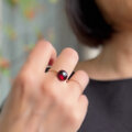 指先で確かな存在感を放つ、ガーネットの大粒リング。