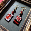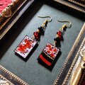 プラバンで作った花札をレジンで裏表コーティングしてピアスにしました。赤いチェコビーズとオニキスを左右非対称につけてあります。和風、花札モチーフがお好きな方にいかがでしょうか?