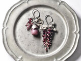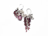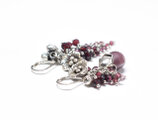 葡萄色マーブルウエディングビーズとたわわなガーネット、お花カレンシルバーと小さな鈴のアンシメトリーピアス