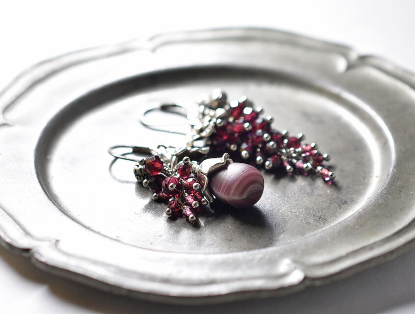 素材:ガラス、ガーネット、カレンシルバー、インドシルバー、シルバー