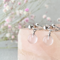 丸みのあるローズクォーツがやわらかく揺れるイヤリング。