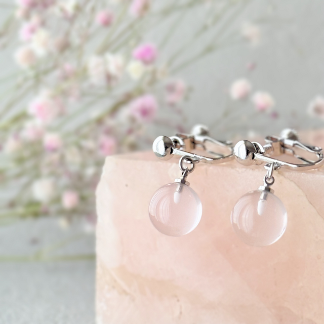 10mm シンプル ローズクォーツ/紅水晶 イヤリング - berry -rose-