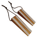 天然杢ナラ無垢材を使用し自然オイル塗装をした木に和風ブラウンの紐をつけています。