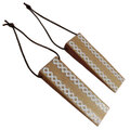 天然杢ナラ無垢材を使用し自然オイル塗装をした木に和風ブラウンの紐をつけています。