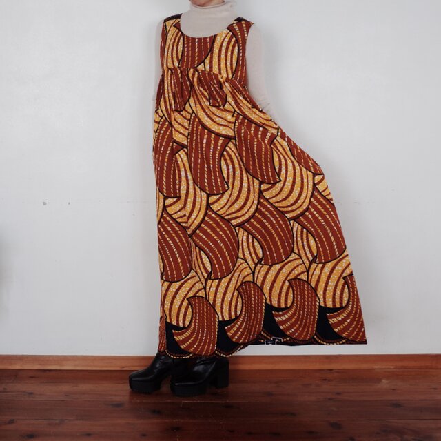 オールシーズン着られるノースリーブのロングワンピースです。付属の紐を使うことで2通りの着方が可能な万能ワンピースです。