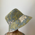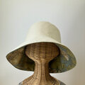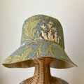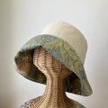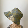 草木染めの桐染めと、植物柄のBest of Morrisのプリント柄のリバーシブルの帽子になります。