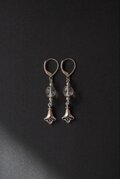 下向きに咲く花は大切な花粉を雨や雪から花を守るため、また下向きの花を好むミツバチやハナバチなどに効率よく受粉をしてもらうよう進化したからといわれてます。風に揺られることで自家受粉しやすい特徴もあるようです。そのような特徴を持つ下向きの花チャームをヒマラヤ水晶と組み合わせ、印象的なピアスに仕上げました。