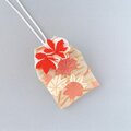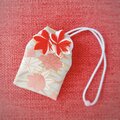 素敵なお守り袋が2つ届きました。 絞りの生地の色合いと大輪の花がとても華やかでキュートです。 白梅のものは、奥ゆかしさと気品を感じました。 どちらも大変気に入りました。大切に使わせていただきます♪