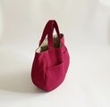 ワインレッド ラウンド型バッグ カツラギデニム 外ポケット ボルドー A4