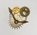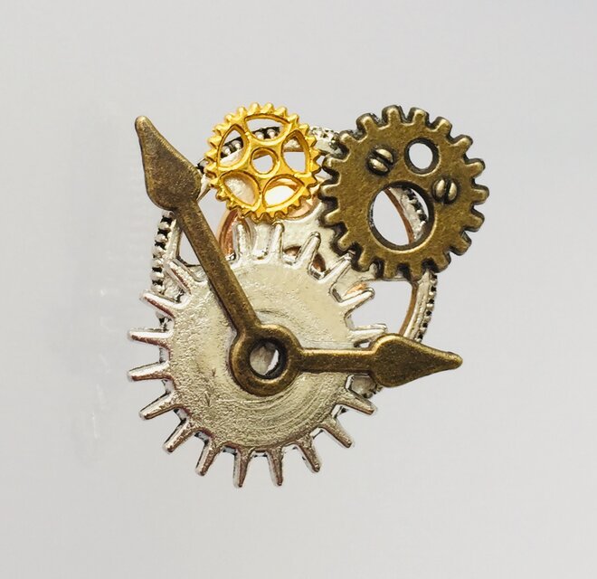 ゴールド・シルバー・金古美の色、大小の歯車・時計の針の絶妙な組み合わせが一点ものとして仕上がっております。