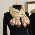 素材:混合パシュミナ、オヤ部分:ポリエステル糸、ビーズ