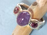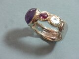 真ん中にカボッションカットの大きなアメジスト、3,55カラット。