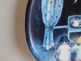 プレートにはゴーストのTVを見ている天使と女の子が描かれています。ちょこんと正座をしながらTVを観ている後ろ姿、女の子の手には小さなお人形、月でカーテンを支えている所など可愛いポイントがたくさん詰まっています。