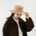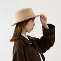 夏の帽子では人気のカンカン帽もすっかりファッションアイテムとして定番型。今回は冬用にウールで仕上げました。