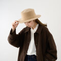 フェルトのようにカチカチではなく、あえて縮絨の良さをいかすため柔らかめに仕上げており、かぶり心地も抜群です。