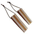 天然杢ナラ無垢材を使用し自然オイル塗装をした木に和風ブラウンの紐をつけています。