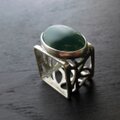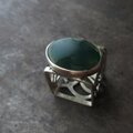 彫りが素晴らしくて緑の着色がなされていたもので、こんなのが指輪になったら素敵だろうなと思ってできたのがこのリングです。