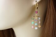 K14GF マルチカラオリエンタルスクエアシャンデリアピアス