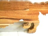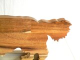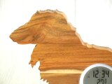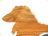 意匠をダックスフンド(ロングコート)のシルエットのみとして、材のアカシア集成材の木目と木組みのモザイク模様を活かしてインテリアとして飽きのこない作りとしています。