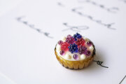 バーナーワークの技法で制作した、とっても小さなベリーのタルトです。