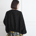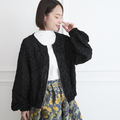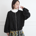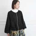 素材で魅せる 柔らかジャガード ノーカラー ジャケット ブラック 0662BK