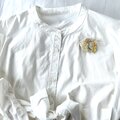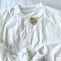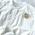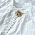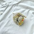 サイトの写真よりなお美しいブローチが届きました!白なのに光でさまざまな色が差し、季節を問わずどんな服にも映えそうです。 包装もとても丁寧で、作品への愛と購入者への心遣いが溢れており、とても幸せな気持ちになりました。 素敵な作品をありがとうございました!きっとまたご縁がつながる気がします。