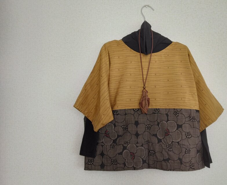 こっくりとした秋色の紬と大島紬を合わせたチュニックです。