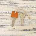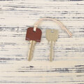 ※ こちらのキーカバーは一枚の革で挟むタイプのキーカバーです。美和ロック(MIWA)の画像2、3のような鍵またはディンプルキー(PRキー、PSキー)が収まるサイズで作っています。画像の鍵は幅約23mmです。他の鍵でご使用いただけるかどうかはわかりかねます。他の鍵ですと穴の位置が合わない場合やサイズが合わなくぐらつきがある場合がありますのでおすすめできません。