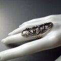 瑞々しいブルー、そしてカットがとても美しいトパーズを、優しく葉で包み込んでいるデザインです。 燻加工で葉の陰影も美しく、とても美しいリングでした。