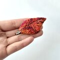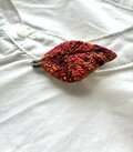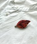 赤、オレンジ、赤茶と細かく色合いや色調を変えながら制作しました。葉脈にはきらりと輝きのある糸を使いました。