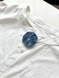 ブルーの丸型刺繍ブローチ"