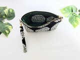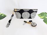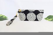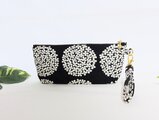 北欧柄サークルフラワーのブラック色、綿オックス地のちょっと大きめサイズの持ち手付きペンケースです。