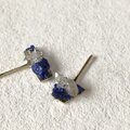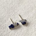 原石ラピスラズリのカケラ等を配した一点物の真鍮ピアスです。