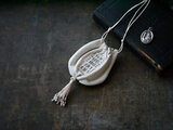 柔らかな国産豚革にアンティークな風合いのステンレスコードでクロスの刺繍を施したネックレスです。