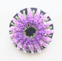 オフホワイトの綿リネン生地に紫色のライラックの花がクルクルとサークルになっている様子をモチーフにした刺繍ブローチです。