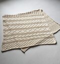 綿100%の糸を使用して編んだ、生成り色の手編みひざ掛けです。
